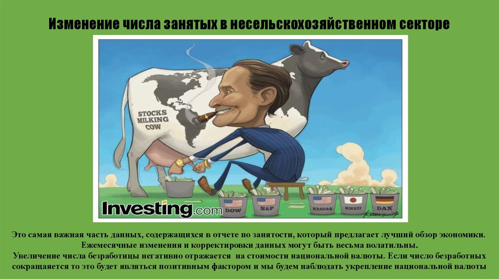 Изменение числа занятых в несельскохозяйственном секторе измеряет изменения числа занятых в течение последнего месяца в несельскохозяйственном секторе. Общее число занятых в несельскохозяйственном секторе составляет около 80% рабочих, которые производят весь объем валового внутреннего продукта Соединенных Штатов.
