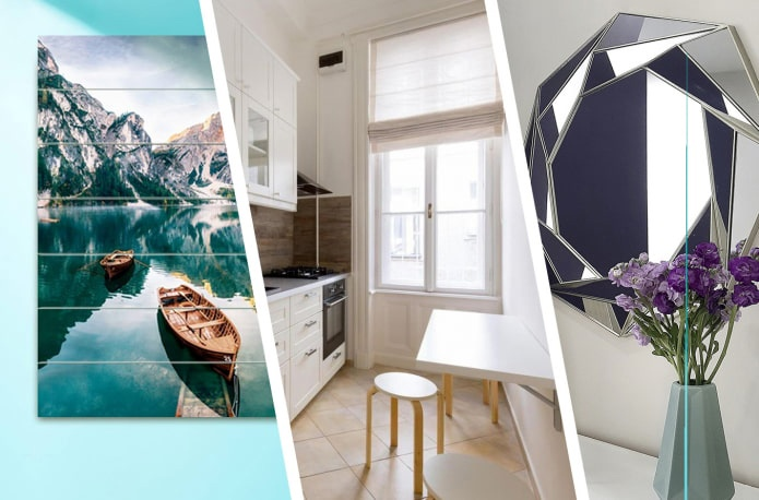 Беспроигрышный приём, который сделает вашу кухню чуть шире и визуально дороже — использование зеркала. Его можно повесить над обеденным столом или даже в рабочей зоне. Зеркало отражает свет и добавляет пространства. Выбирайте для кухни необычные декоративные зеркала, которые послужат настоящим украшением кухни — они перетянут внимание на себя и отвлекут от пропорций помещения.