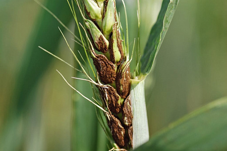Это заболевание злаковых называют в простонародье «пьяный хлеб». Грибковое Fusarium graminearum поражает колосья, метелки, чаще заболевание встречается на пшенице, реже на ржи, овсе и ячмене. Зерно, зараженное фузариозом вызывает отравление как у человека, так и у животных, схожее по симптомам с алкогольным отравлением. Заражение колоса происходит в период созревания посевов несколькими способами, но всегда носит местный характер: