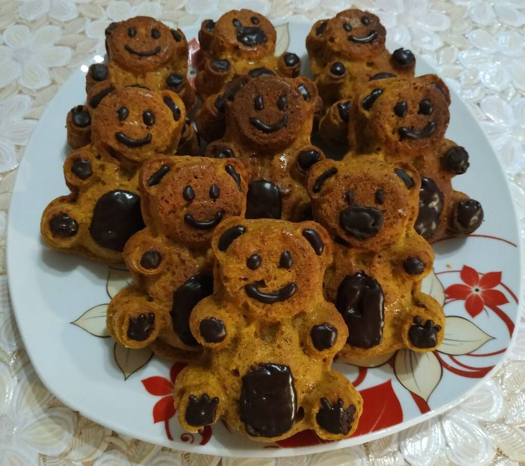 #меню Ингредиенты: тыквенного пюре,, муки,, сахара,, желтков или 3 яйца,, корицы,, мускатного ореха,, разрыхлителя, Способ приготовления: Тыкву, разрезав пополам или на кусочки, запечь в разогретой духовке при температуре 180 градусов до мягкости. Время запекания зависит от сорта и размеров кусочков тыквы. Мягкую запеченную тыкву измельчить в блендере с сахаром. Добавить в полученную массу яйца и мягкое сливочное масло, все хорошенько взбить венчиком. Добавить муку, корицу, разрыхлитель, мускатный орех и перемешать, тесто получится густым. Вылить тесто в формочки для выпечки, и отправить в горячую духовку. Я переложила тесто в кондитерский мешок,так удобнее заполнять формочки. Выпекать 40 минут при температуре 180 градусов. Вкусные кексики с тыквенным пюре готовы, украсить можно по своему вкусу. Приятного аппетита!