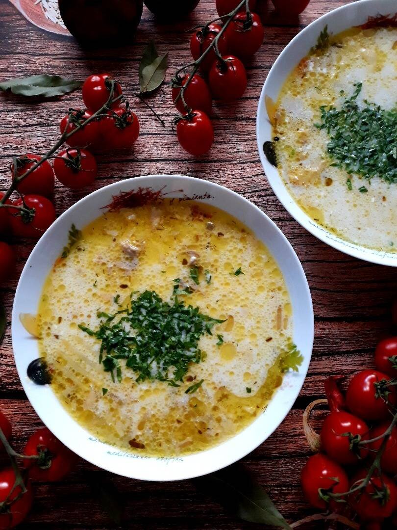 Быстрый вариант рассольника 🍜🥄🍞 #готовимвместе #первое #суп #рассольник Ингредиенты: картофелины 🥔, риса, Сметана для подачи, заправки "магги" для рассольника, Зелень петрушки для подачи, бульона (у меня куриный), мяса (курица), лавровый лист, горошка душистого перца, перца горошком Способ приготовления: В кипящий бульон добавить мясо курицы, разобранное от костей. Нарезанную картошку. Как закипит, добавить промытый рис, заправку "Магги" и специи. Соль не добавляю, т.к. заправка соленая. Варить 10 минут. Разлить порционно, добавить сметану. Посыпать мелко нарезанной зеленью петрушки. Приятного аппетита!