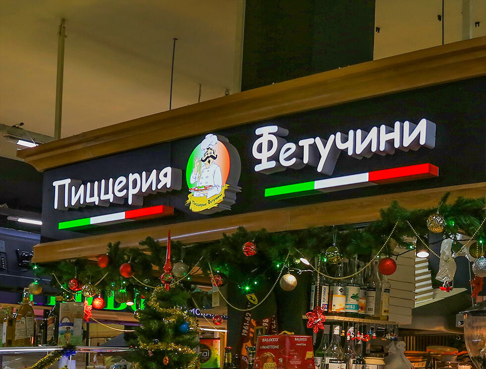 Мы изготовили и произвели монтаж объемных букв для пиццерии "Пиццерия фетучини". Делаем эксклюзивную световую и не световую рекламу для пиццерий, кафе, ресторанов, фудкортов, точек общепита в Москве и Московской области из пластика и французского литого акрила различных цветов толщиной до 30 мм.