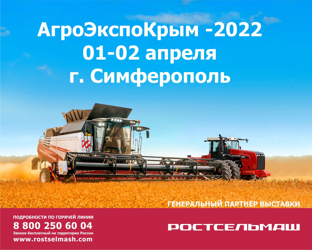 Выставка «АгроЭкспоКрым», начнет свою работу 1 апреля в г. Симферополе, в течении двух дней посетителям представится уникальная возможность ознакомиться с современными технологиями и мировыми трендами в сельском хозяйстве. Больше новостей на сайте Крымского Информационного Агентства В рамках мероприятия планируется проведение тематических семинаров, круглых столов, конференций. Цель X Специализированной Аграрной Выставки – продемонстрировать новейшие рыночные тенденции и направления будущего развития сельского хозяйства, стать отправной точкой для создания долгосрочного делового партнерства в аграрной сфере и определить векторы реализации стратегии сельского хозяйства и сельской местности на 2022 – 2023 годы. Один из лидеров сельхозмашиностроения — компания РОСТСЕЛЬМАШ, представит актуальные и популярные среди аграриев всего мира модели производимой самоходной и прицепной сельскохозяйственной техники, в том числе комбайн ACROS 595, пресс-подборщик тюковый TUKAN. Специалисты про