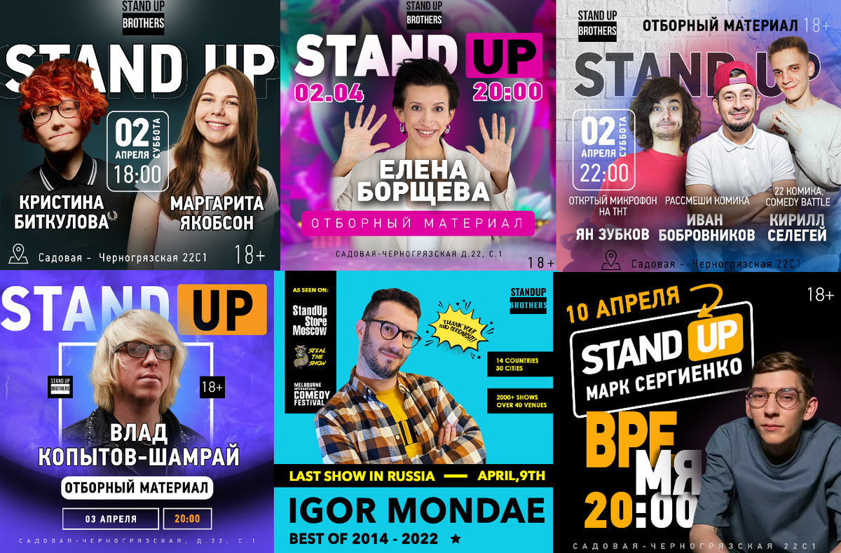 ⭐️АНОНС Концертов в Stand Up Brothers! 👉🏽 2 АПРЕЛЯ 🎁В 18:00-Stand Up|Маргарита Якобсон и Кристина Биткулова 🎁В 20:00 - Stand Up|Елена Борщева 🎁В 22:00 - Stand Up|Кирилл Селегей, Ян Зубков, Иван Бобровников 👉🏽3 АПРЕЛЯ 🎁В 20:00 - Stand Up|Влад Копытов-Шамрай 👉🏽9 АПРЕЛЯ 🎁В 20:00 - Stand Up|Final show of Igor Mondae (Croatia) in Russia! 👉🏽10 АПРЕЛЯ 🎁В 20:00 - Stand Up|Марк Сергиенко Бронирование по ссылке http://www.standupbrothers.moscow 📍м. Красные Ворота, ул. Садовая-Черногрязская, д.22, с.1