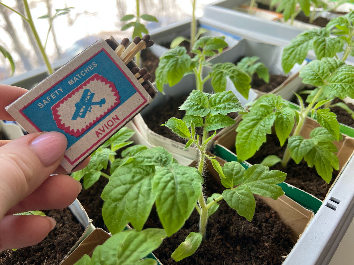 Подкормка рассады фосфором с помощью спичек. Совет от моей бабушки.