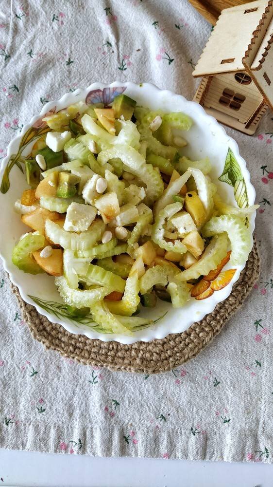 #1апреля Неимоверное сочетание вкусов. Яблоко, сельдерей, авокадо и мягкий козий сыр. Это нереально вкусно 😋. Ингредиенты: сельдерея, яблоко, авокадо, мягкого сыра (тофу для постного варианта), кедровые орешки и желанию (замачиваю), соль, перец, приправы , лимонного сока, горчичное масло для заправки Способ приготовления: Яблоко, сельдерей и авокадо моем. Авокадо чистим. Сельдерей режем соломкой, авокадо и яблоко кубиком. Перемешиваем. Сыр режем кубиком. Солим перчим, добавляем приправы, лимонный сок и масло, хорошо перемешиваем. Посыпаем орешками. Подаем к столу. Можно сделать постный вариант с тофу, тоже будет очень вкусно. ❤️ приятного аппетита).