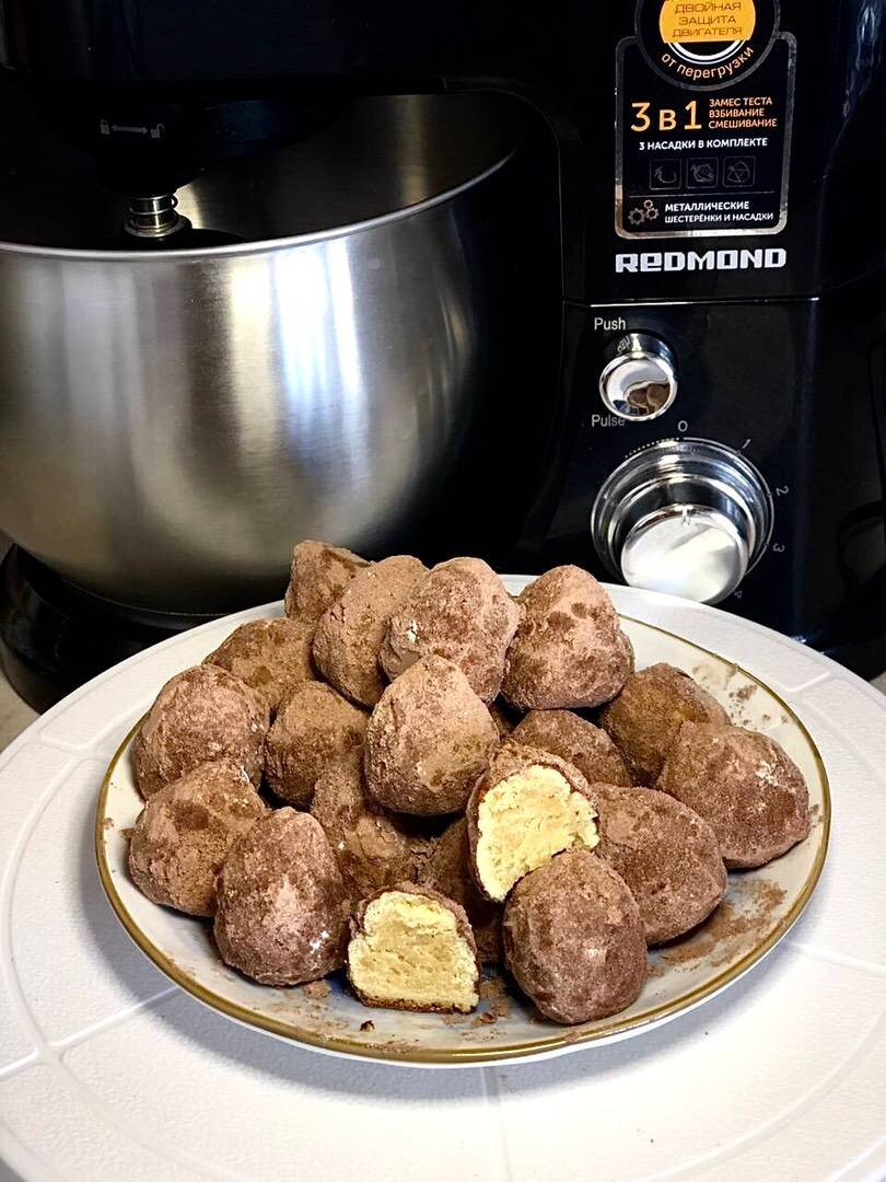 как мне по вкусу напоминают конфеты - трюфель. Очень вкусное ,рассыпчатое печенье!😍 Готовится на основе вареных желтков и обваливаются в какао. Обязательно попробуйте!🤤😍 #печенье #печеньетрюфель #трюфель Ингредиенты: вареные желтки, сливочное масло, сахар, ванилин или ванильный сахар, мука, какао, сахарная пудра Способ приготовления: Яйца сварить, отделить белки от желтков. Желтки растереть в крошку. Масло немного растопить, добавить к желткам. Перемешиваем масло и желтки, добавляем сахар, ванилин, просеиваем муку и собираем тесто в шар. От теста отделяем кусочки по 19-21 г. Придаём форму конуса, каждому печенью. У меня получилось 27 штук. Печенье перекладываем на тарелку и убираем в морозильную камеру на 10-15 минут, чтобы лучше держали форму при выпечке. За это время прогреваем духовку до 180 градусов. Отправляем конусы на противень, застеленный пергаментной бумагой, на 15-25 минут. Ориентируемся по своей духовке! Начнут румянится, отключаем. Печенье чуть-чуть остынет и обваливаем