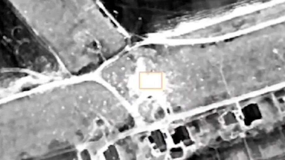 На кадрах видно, как беспилотный летательный аппарат осуществляет наводку на цель, после чего следует мощный ракетный удар.