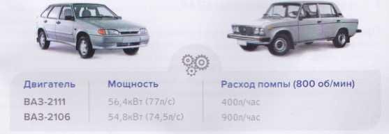 Сравнение мощности двигателей ВАЗ 2111 и 2106 и расхода стандартных водяных насосов: