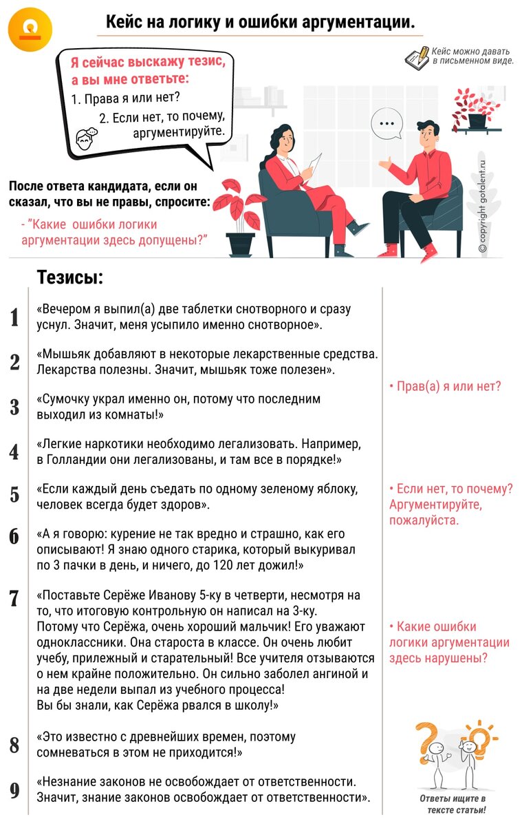 Мы подготовили для вас яркую инфографику с примерами оценки навыков аргументации. 🟠 Ответы "Кейс на логику и ошибки аргументации".