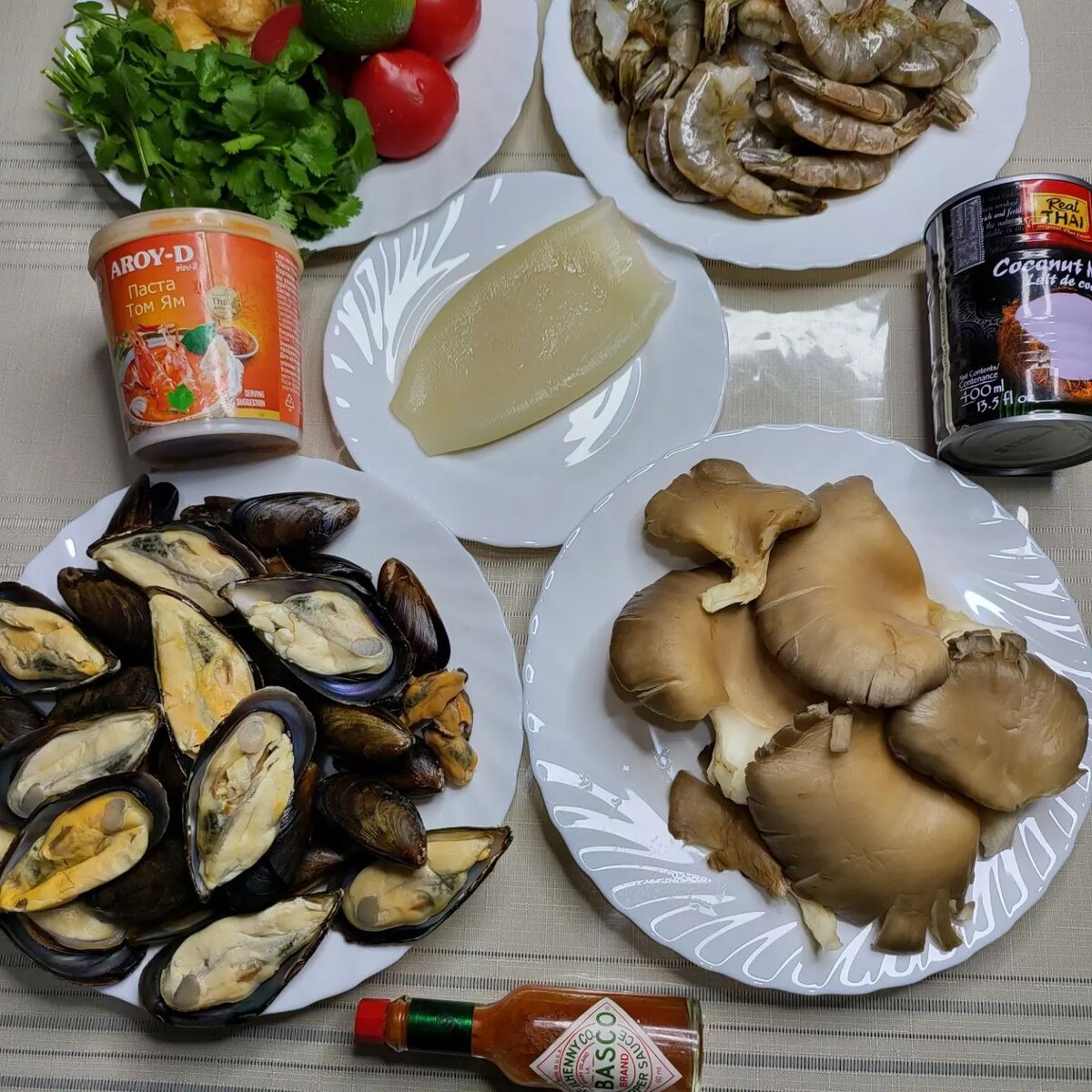 🌶 чистим 1 кг креветок, панцири заливаем водой, добавляем 150 гр порезаного тонкими пластинками имбиря, 1 -2 палочки лемонграсса, 1 тонко порезаный острый перчик и стебли от кинзы, кипятим на медленном огне в течении 20-30 минут.Основы готова.