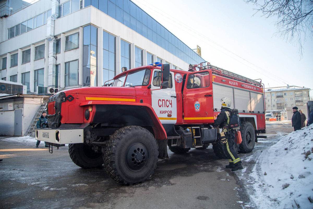 К месту происшествия оперативно прибыло 8 пожарных расчетов и две автолестницы. Огнеборцы провели разведку, эвакуировали персонал и потушили пожар. #МЧС #МЧСРоссии #МЧСКиров
