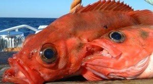 Морской окунь. Мне довелось его ловить в северной Атлантике с борта океанографического исследовательского судна "Леонид Дёмин". Судно иногда ложилось в дрейф на несколько часов, и у команды появлялась возможность половить рыбу. Все, кто хотел из команды, и свободные от вахты, выходили на верхнюю палубу и становились по бортам. Окунь ловился с большой глубины, так что приходилось связывать воедино две 100-метровых лески. Как ни странно, у "бывалых" на судне всегда имелись и леска, и крючки. Вместо груза привязывалась любая тяжелая гайка, на крючок привязывалась красная нитка. Вот такая нехитрая снасть получалась - кидай за борт и маши рукой вверх-вниз. Снасти передавались из рук в руки. Уходя на вахту, владелец обязательно кому-то её оставлял. Рыбу отдавали на камбуз, и коки готовили из неё замечательные блюда. Окунь морской - очень вкусная рыбка. Вываживать окуня приходилось с очень большой глубины. От перепада давления у него надувались глаза и плавательный пузырь, который аж вывали