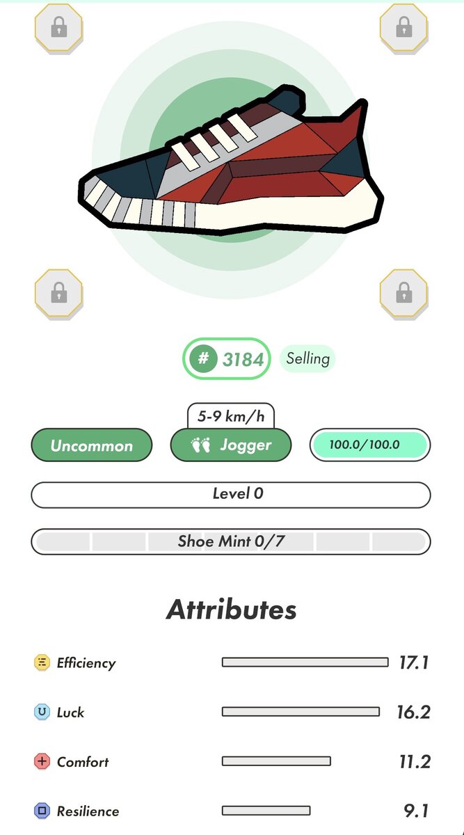 В режиме марафона более высокая эффективность позволяет быстрее набирать очки в таблице лидеров. В режиме Марафона эффективность может помочь пользователям быстрее подняться на доску лидеров, так как кроссовки с более высокой эффективностью будут накапливать больше очков. Эффективность – идеальный атрибут для пользователей, если они хотят сами перейти в режим Соло и марафона (еще не доступны). Luck – Удача (Таинственная шкатулка) В одиночном режиме «Удача» определяет частоту и качество выпадения Загадочной коробки. Mystery Box также могут быть заработаны владельцами кроссовок, в то время как их кроссовки сдаются в аренду другим пользователям. Удача – идеальный атрибут для пользователей, которые планируют сдавать