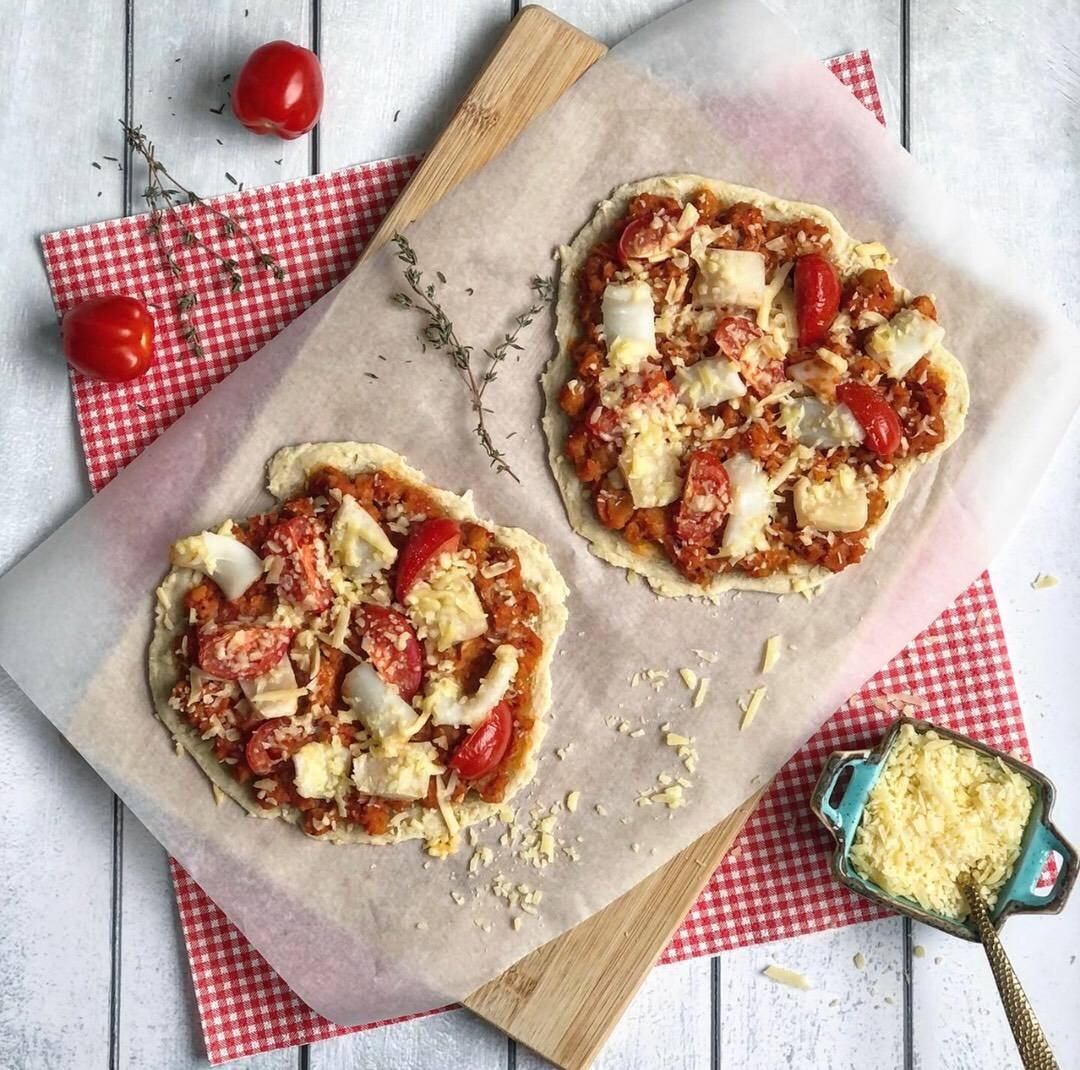Я сегодня к вам с рецептом вкусной пиццы с морепродуктами и домашним томатным соусом с нутом. Кстати, этот соус может быть и отличной самостоятельной закуской, и хорошей альтернативой классическому хумусу. Оставшейся соус ешьте с горячей пшеничной лепёшкой, запивая бокалом розового вина, а в холодильнике этот соус можно хранить до пяти дней 😋 Ингредиенты: Для пиццы:, муки, воды, оливкового масла, соли, Для начинки:, консервированного нута (400 г), консервированных томатов в собственном соку, чеснока, сухие листики тимьяна, аджики, маленький кальмар, морских гребешка, помидора черри, тёртого пармезана, оливкового масла, соль, свежемолотый чёрный перец Способ приготовления: В миске смешайте муку, соль, воду и оливковое масло, замесите тесто, разделите на две части и каждую часть раскатайте в тонкую лепёшку. Разогрейте духовку до 220 градусов и подпеките лепёшки 2-3 минуты. Консервированные помидоры мелко нарежьте, нут откиньте на дуршлаг, чтобы стекла жидкость. Чеснок порубите и обжарьт