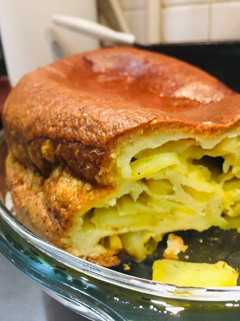 Простой Пирог без соды и дрожжей. #заливнойпирог #пирог #пирогКартофельный #пирогСкартошкой #простойпирог #быстрыйпирог #бездрожжей #выпечка #безсоды #безсахара #пирогнамолоке #пирогскартофелем Ингредиенты: яйца, молока , муки, Соль, Зелень, Картофель или 4 маленьких шт, Масло для смазывания формы Способ приготовления: Пирог готовится легко и быстро. Получается пористый, хорошо поднимается и пропекается. Яйца взбить, добавить молоко, смешать, просеять туда же муку, подсолить немного. Разогреть духовку до 200 градусов. Нарезать картофель тонкими дольками. Посолить, добавить зелень. В форму хорошенько смазанную маслом налить тесто, разложить поверх картошку, притопить её внутрь. Выпекать 30 минут при 180-200 гр.