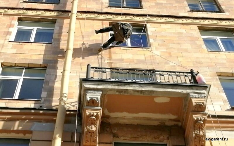 Протечка в квартире. Как найти причину протечки на фасаде. Если в квартире на потолке или над окном появились протечки, точки затекания следует искать на кровле или на фасадах. В квартире, в основном, мокнут окна, откосы, углы, наружные стены и потолки. Реже происходит затекание внутрь комнаты. Во время обследования внутри квартиры мы мониторим состояние конструкций с помощью тепловизора или влагомера, следим за появлением протечек и увлажнением конструкций. Поиск протечек на фасаде мы проводим с применением комплекта специального оборудования и высотного снаряжения. На фасаде высотник проводит обследование окон, балконов, облицовки, точек крепления труб и кабелей на наличие дефектов. На фасадах, облицованных плиткой, осматриваем швы и простукиваем плитку. В отдельных случаях применяются электрические, видео-диагностические и специальные вспомогательные методы, которые показывают невидимые дефекты. На фасаде высотник проводит испытание выявленных дефектов с проверкой каждого дефект