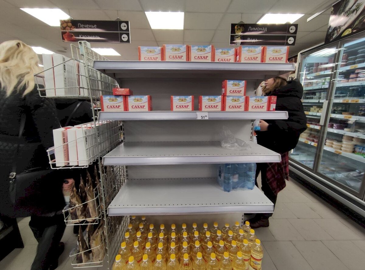 Если вбить в российском твиттере слово «дефицит», можно найти сотни любительских видео из супермаркетов по всей стране. Люди, испуганные невиданным ростом цен, инфляцией, которую уже с трудом останавливает Центробанк, ежедневно сжигая валютные резервы, и нескончаемыми кадрами войны скупают все, что не портится. Косметику, особенно западную — после введения санкций европейской в магазинах уже не будет, торговые сети распродают то, что осталось на складах с мирных времен. Бытовую химию — в таких количествах, словно у людей в квартирах по десять унитазов и сорок кухонных плит.