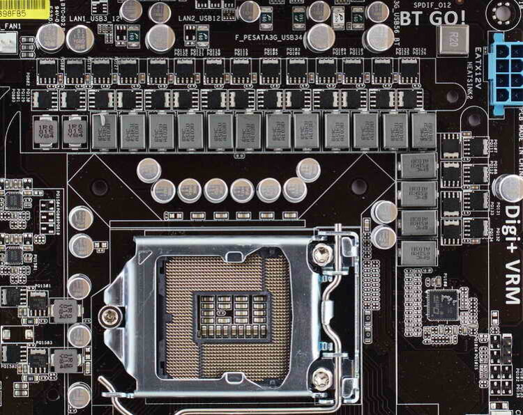 Чтобы знать, о чем собственно речь, давайте обратимся к фотографии материнской платы, вернее, к части ее, расположенной возле процессорного сокета. Вот типичная картина того, что можно увидеть на любой плате.