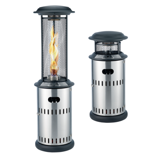 Спроектирован для работы на газу в условиях повышенной нагрузки в коммерческих организациях. Турбогорелка на 14 кВт. Корпус выполнен из утолщенной нержавеющей стали, диаметр основания увеличен для устойчивости в сложных погодных условиях, а также предусмотрена система автоматического отключения при падении, цепочка и замок на дверцу для безопасности. Стойка обогревателя регулируется, что очень удобно для хранения.
