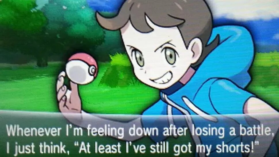 "Привет! Мне нравятся шорты! Они удобные и их легко носить!". Это бесспорно случайный боевой клич юнца в оригинальных Pokemon Red и Blue. И поскольку этот странный модный совет запомнился многим игрокам, он остался в серии в качестве шутки. На нее ссылались во многих играх Pokemon, в том числе в Pokemon X и Y. #пасхалки #пасхалки в играх #пасхальные яйца