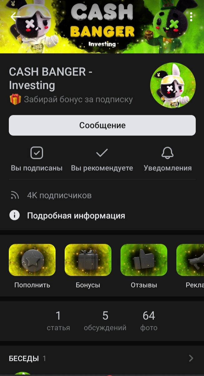 Смотрел видео в Ютубе и вдруг наткнулся на одного бота. Думал, что это развод, но всё равно решил попробовать. Этот бот в группе ВКонтакте. Как бывает, такие боты существуют не более 1.5 - 2 месяцев. Этот думаю, что будет не исключением. Раньше такие боты не выводили деньги, вот решил проверить на вывод этого бота. 3 рубля набрал за 2 дня. Да, вы наверное думаете, что за фигня. Это даже не деньги. Вы каждый день всё больше развиваетесь, значит больше зарабатываете. Лучше всего приводить рефералов по своей ссылке и зарабатывать на них игровую валюту. Вы можете инвестировать свои деньги в этот проект. Но всё же это большие риски. Сам в этом проекте только несколько дней, он открылся совсем недавно. Да, возможно много здесь вы не заработаете, но всё зависит от того, сколько вы будете выделять этому делу времени. НО!Главное думайте своей головой. Я никому не советую вкладывать сюда деньги, думайте сами. Вы можете просто попробовать бесплатно развиваться месяц или до того времени, пока н