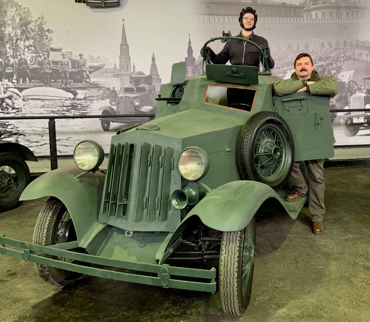 После чего у коллекционера Игоря Шишкина и его команды из проекта «Военный ангар» ушло полтора года на детальную реставрацию бронеавтомобиля. Зато теперь в экспозиции московского музея «Моторы войны» представлен единственный в мире Д-12, к тому же восстановленный до ходового состояния. Мне повезло увидеть первый выезд раритета на публику, а потом даже посидеть за рулем и подробно изучить начинку под руководством историка Юрия Пашолока.