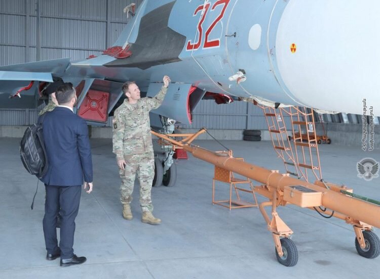 Аккредитованные в Армении военные атташе стран-членов ЕС и НАТО посетили авиабазу, на которой базируются армянские истребители Су-30СМ. Как сообщает пресс-служба МО Армении, в ходе посещения авиабазы ее командир, полковник Самвел Тавадян ознакомил гостей с деятельностью воинской части, ответил на их вопросы. Военные атташе также осмотрели территорию части, ознакомились с авиационным вооружение и военной техникой.