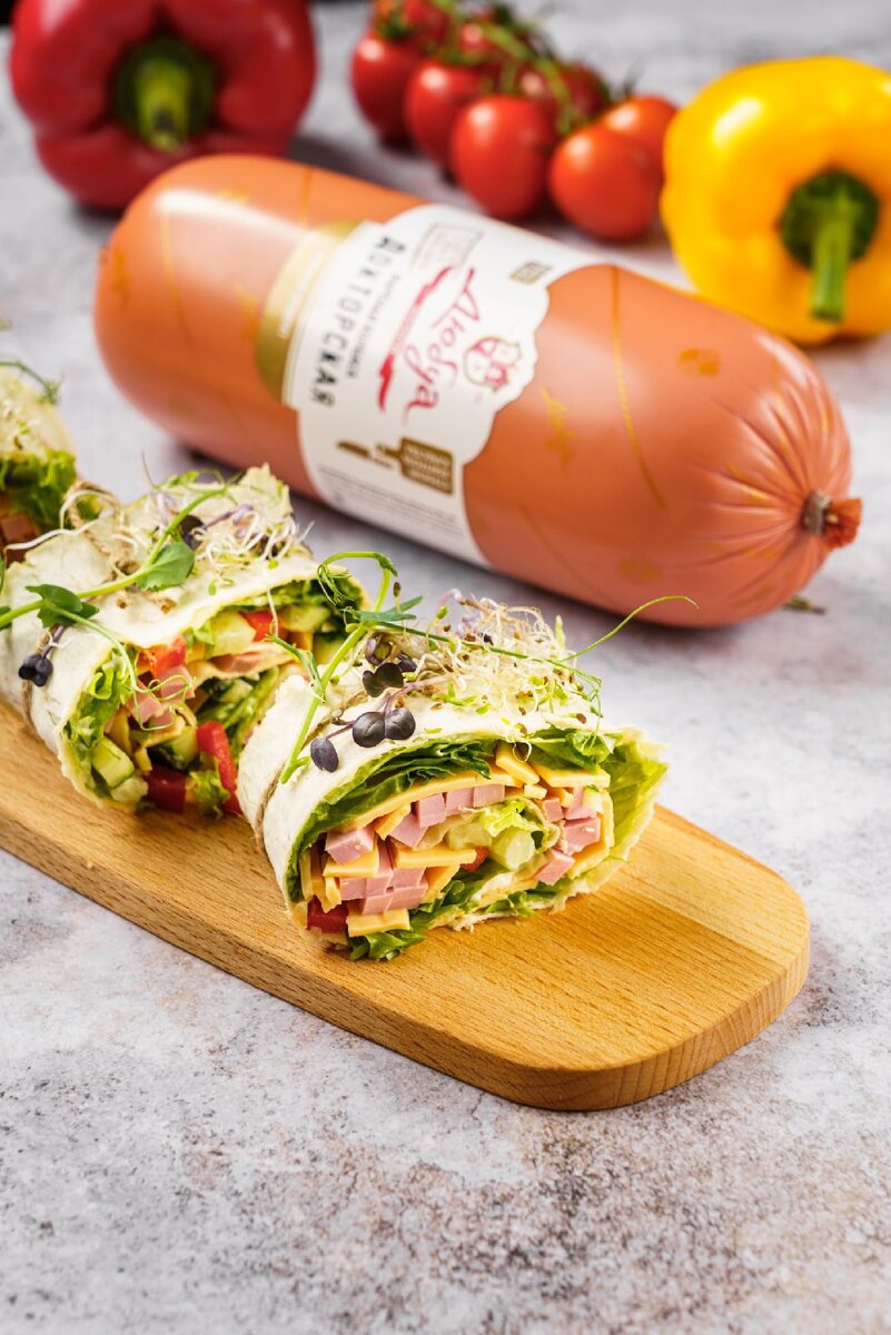 Мы готовы удивлять вас ежедневно! Еще один быстрый, но очень оригинальный рецепт в вашу копилку. Записывайте! Рулеты с хрустящими овощами и варёной колбасой Ингредиенты: - Лаваш - 1 шт.; - Майонез; - Болгарский перец - 1 шт; - Огурец - 1-2 шт.; - Вареная колбаса "Докторская” от ТМ "Дюбуа" - 150-200 гр.; - Плавленный сыр в пластинах – 1 пачка; - Салатные листья. Способ приготовления: 1. Огурец, болгарский перец и колбасу нарезать соломкой. 2. Лаваш смазать тонким слоем майонеза. Выложить салатные листья, огурец и болгарский перец. Сверху разложить пласты сыра, а затем – соломку колбасы. 3. Свернуть плотным рулетом, перевязать бечёвкой таким образом, чтобы потом она осталась на каждом отрезанном кусочке. 4. Убрать в холодильник, накрыв полотенцем или пищевой плёнкой. 5. Дать постоять 20-30 минут. Затем нарезать на порционные куски и подавать к столу. Приятного аппетита!