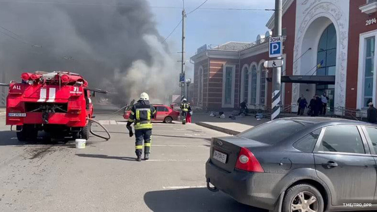 Обломки ракеты "Точка-У" упали в непосредственной близости от железнодорожного вокзала. Рядом со зданием станции начался пожар. Идет эвакуация людей. Данные о пострадавших и погибших уточняются.