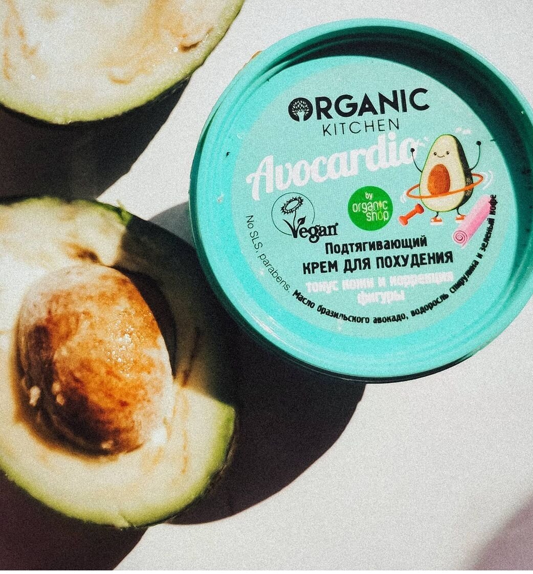 Avocardio Задорный авокадо-зарядит и разгладит🥑 Состав обычный, на мой взгляд, ничего выдающегося, кроме, пожалуй, спирулины. У меня еще не было ни одного бьюти продукта с ней в составе😯 По текстуре крем похож на гуакамоле. Распределяется по коже он хорошо, только в процессе нанесения белеет и вот уже белые разводы нужно тщательно размазывать. На похудение, конечно я не надеялась, для этого я начала правильно питаться и пить водичку и вот уже в сочетании со всем этим крем даёт результат. Кожа стала увлажненной, мягкой, приятной тактильно. Плюсы : -увлажняет -не остаётся липкого слоя -цена 95-130 рублей(брала в edemcosmetics) - интересное оформление -экономичный расход -приятный запах авокадо Минусы -не ждите чуда, без спорта и питания жиры не уйдут 😉 - - - - #organic #organickitchen #уход #косметика #уходзакожей #авокадо #хдеем #хдеемпослеродов