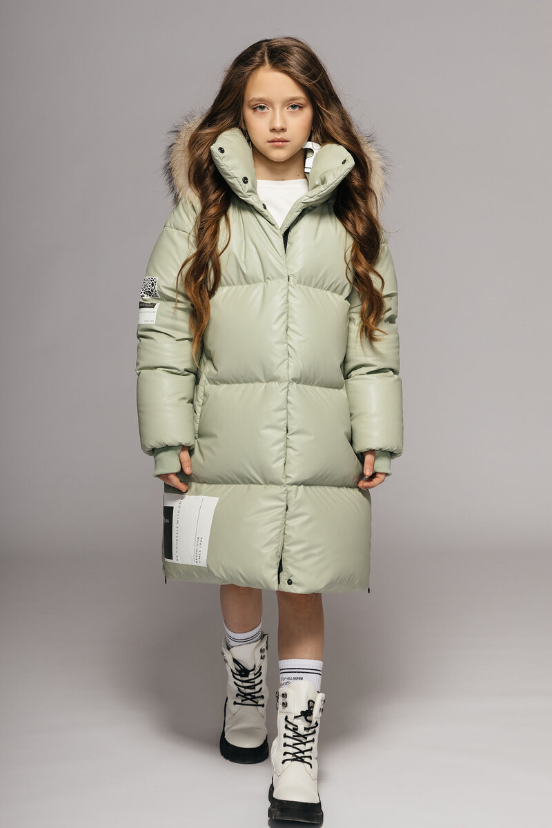 Начнём с одной из самых интересных моделей сезона: натурального пуховика для девочки З-961, на рост 110–134 см.