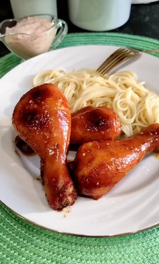 Куриные ножки это всегда вкусно👍 а в медовом маринаде просто оболденно, обязательно попробуйте, не пожалеете). Ингредиенты: Куриные голени, Сок половины лимона, Растительное масло , Перец черный молотый , Соль , Сладкая паприка , Чеснок сушеный, Мед , Горчица Способ приготовления: Мед, горчица, масло растительное, сок лимона, специи и соль смешать. Куриные голени залить маринадом и оставить минимум на 2 часа. Духовку разогреть до 180°С. Ножки выложить на противень и отправить в духовку. Я запекала час, но нужно ориентироваться на свою духовку. Маринад сохраняем. За 20 и 10 минут до готовности ножек смазать их маринадом, это нужно для получения медовой глянцевой корочки.