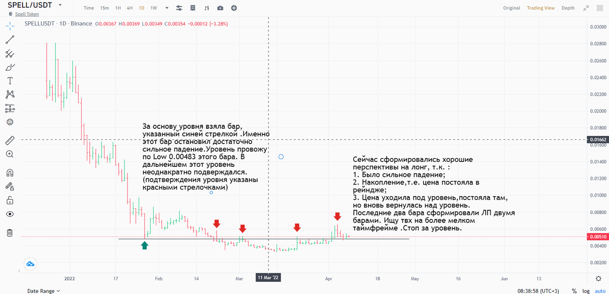 Перспектива на лонг SPELL/USDT