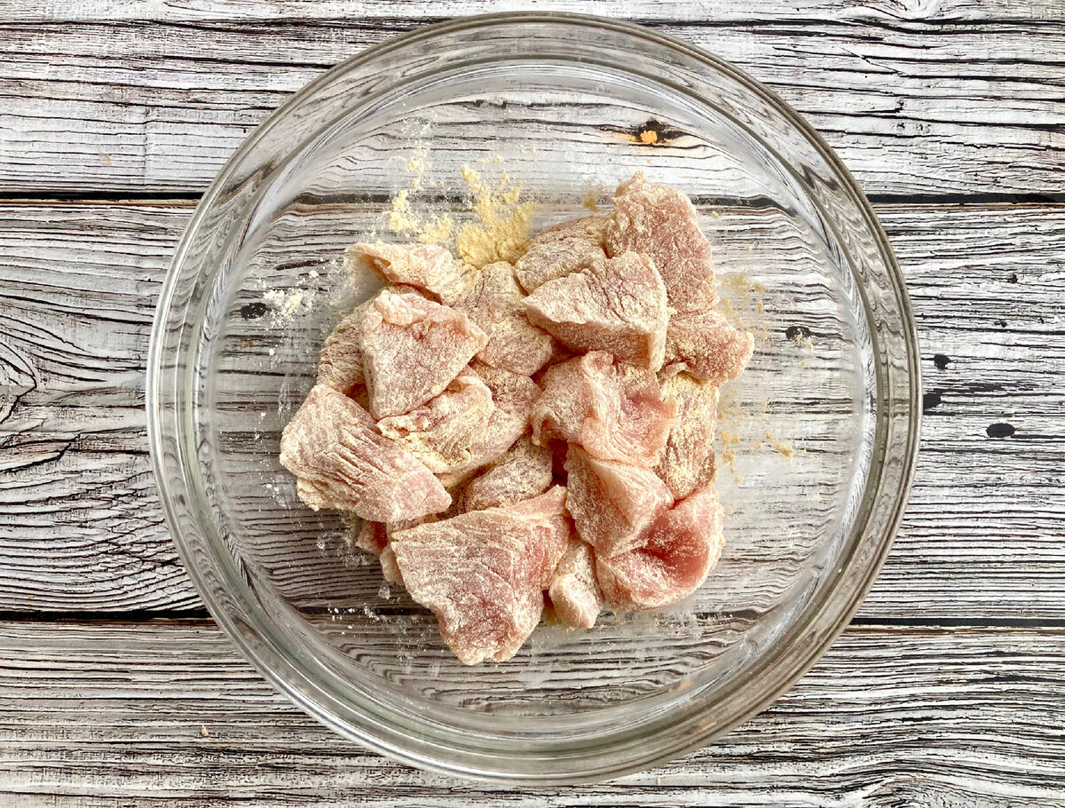 Карри родом из Индии, однако это блюдо давно распространилось и в другие страны. Оно может быть рыбным, овощным, куриным — да каким угодно. По сути это густая ароматная подливка с каким-то сытным продуктом. Главная особенность карри — в приправах. У нас обычно продают уже готовую смесь разных пряностей, во главе которых куркума, именно она и окрашивает готовое блюдо в приятный желтый цвет. Хотя есть и зеленое, и красное карри. Обычно карри — это экзотично, но быстро и весьма недорого. Вот подобный рецепт я и предлагаю на ваш суд. Готовим быстрое куриное карри Полный список ингредиентов — в первом комментарии под этой публикацией. Для этого блюда нам нужно полкило куриного или индюшиного филе. Нарезаем его небольшими кубиками «на один укус». Немного солим и обваливаем в муке (у меня — кукурузная, можно брать более нам привычную пшеничную). Обжариваем кусочки курицы на среднем-сильном огне в растительном масле (можно добавить к нему сливочное, будет вкуснее). Мясо должно практическ