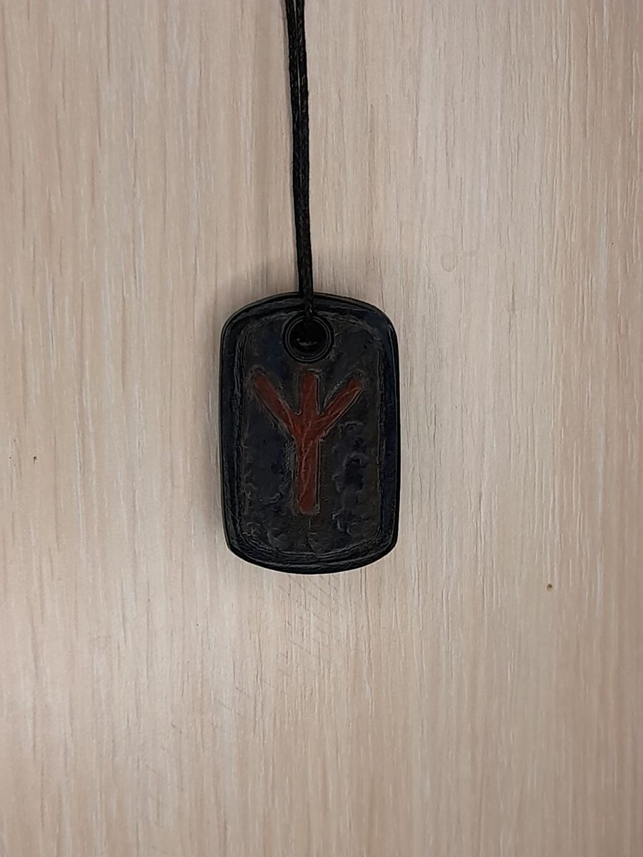 Руна Альгиз. Пятнадцатая руна Старшего Футарка, олицетворяет глухую оборону. Символически описывается как щит или рыцарские доспехи. Современным вариантом такого типа защиты является бронежилет, водолазный костюм, химзащита и другие вариации защитной одежды. Главной функцией этой руны является – не допустить контакт с негативом, создав собой защитный барьер на его пути. Нанесена путем тиснения на дубленной коже. #руны #альгиз #щит #доспех #антинегатив #барьер #защита #один #викинги #ручнаяработа