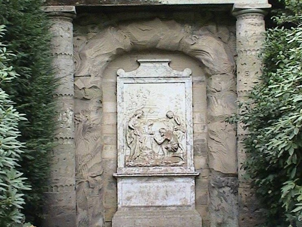 В Шагборо в графстве Стаффордшир, на территории старого поместья, некогда принадлежавшего эрлу Личфилда, стоит мемориальный памятник середины XVIII века. На барельефе изображена копия 2-го варианта картины Пуссена «Аркадские пастухи» в зеркальном отражении и с классической надписью «ET IN ARCADIA EGO» в правильном отражении. Ниже барельефа высечены буквы O•U•O•S•V•A•V•V — в обрамлении ещё двух букв D и M. DM может означать Diis Manibus, центральная же аббревиатура остаётся непонятной. Набор букв является неким кодом, дешифровка которого продолжается более 250 лет.