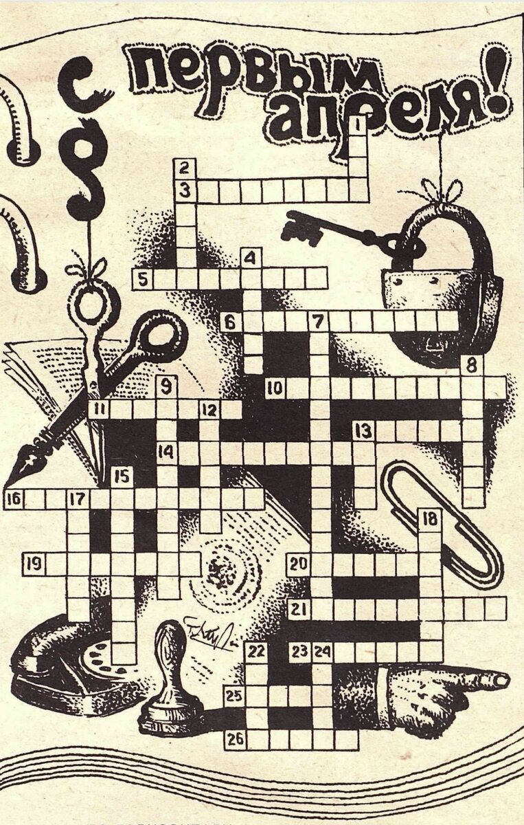 Сегодня предлагаю возвратиться (для тех, кто там уже был) в 1987 год. К 1 апреля в Крокодиле такой вот кроссворд напечатали.
