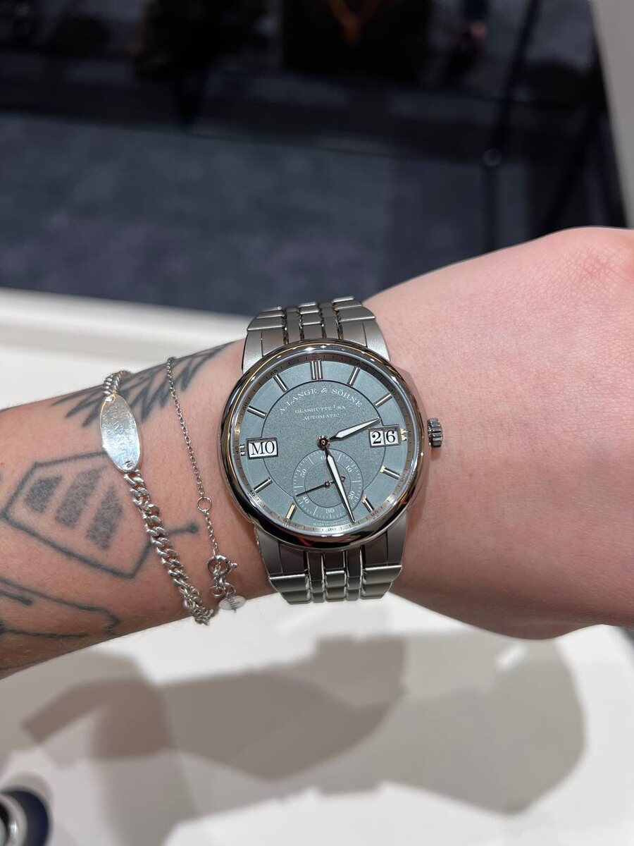 Основная новинка 2022 года – это ODYSSEUS в корпусе из титана. Этот материал A. Lange & Söhne используют впервые. Часы получились на 42 грамма легче, чем стальная версия. Их вес составляет всего лишь 104 грамма. Это просто невесомые часы.