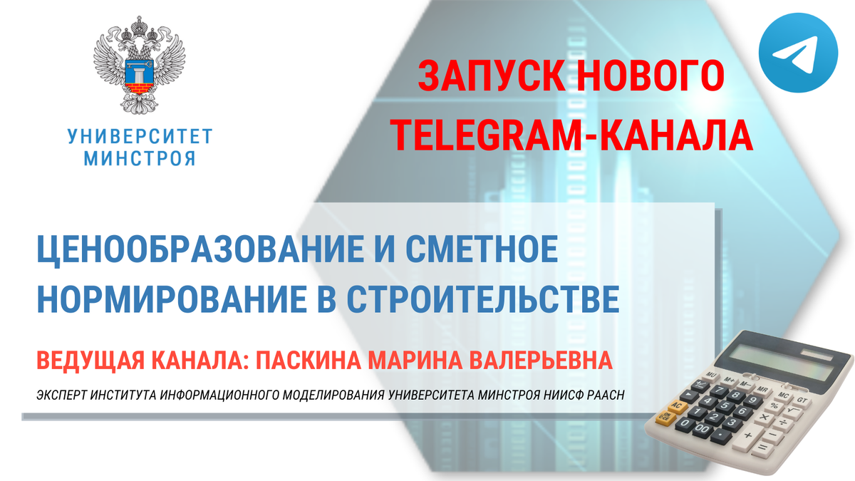 ЗАПУСК НОВОГО TELEGRAM-КАНАЛА УНИВЕРСИТЕТА МИНСТРОЯ ПО ЦЕНООБРАЗОВАНИЮ