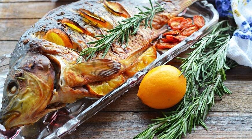 Чтобы определить, сколько времени понадобится для запекания карпа в духовке, нужно знать вес тушки. На килограмм рыбы достаточно 30 минут.
