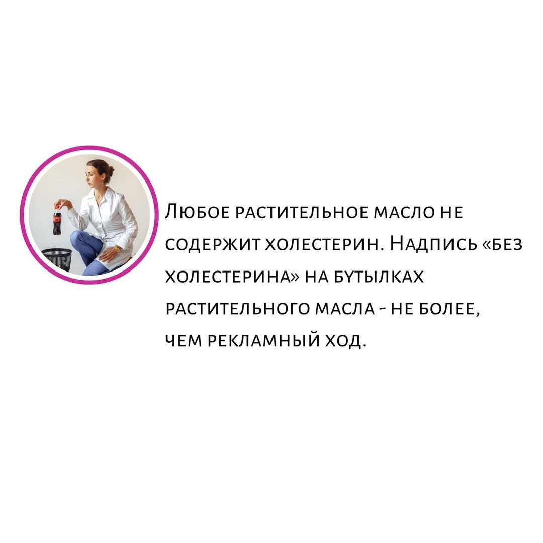 С пищей поступает всего 20% холестерина, остальные 80% образуются в организме, больше всего в печени. ⠀ Холестерин выполняет много важных функций: из него образуются желчные кислоты, благодаря которым жир всасывается в кишечнике. Он участвует в образовании половых гормонов, глюкокортикоидов, минералокортикоидов. ⠀ Его источником являются только жиры животного происхождения, растительные жиры не содержат холестерина. Поэтому когда на растительном масле написано «Не содержит холестерин» — это не более чем рекламный ход. Если поступление холестерина в организм с продуктами питания уменьшается, то его образование в печени усиливается. Поэтому полностью избавить себя от холестерина диетой не получится. Но тем не менее, употребление продуктов, содержащих избыточное количество холестерина, приводит к повышению его уровня в крови. ⠀ Единственный путь выведения холестерина из организма — в составе желчи. При нарушении работы желчного пузыря или воспалении в нем, холестерин выпадает в виде