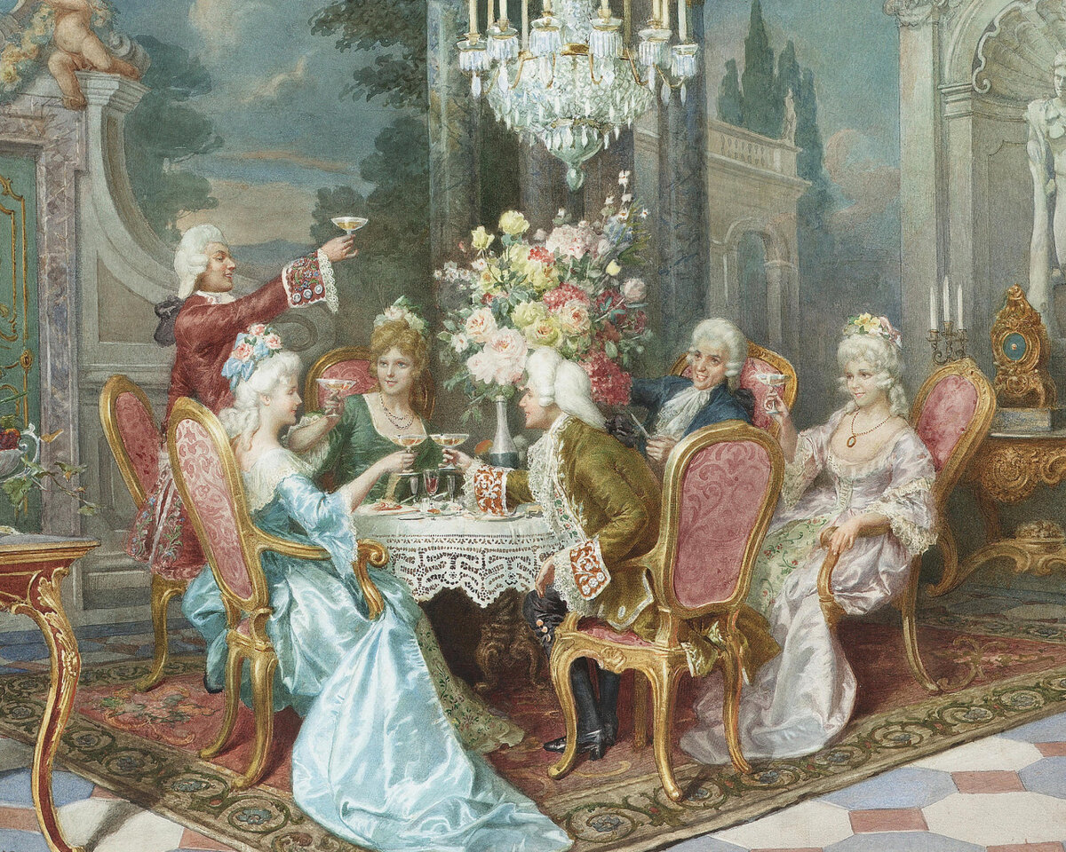 Французский стиль сервировки формировался во времена королей — Людовика XIV, XV и XVI. В конце XVIII века после Французской Революции с легкой руки русского царевича, жившего в Париже, по всей стране распространилась мода на так называемую «русскую» сервировку. «Блюда вкатывали в столовую на тележке, и прямо с нее раскладывали по тарелкам.