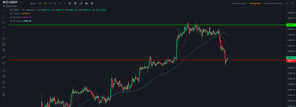 📉 Цена за 24ч. 1 (BTC) 44 844,62 $ -4.8% 2 (ETH) 3 266,39 $ -3.9% 3 (USDT) 1,00 $ 0.0% 4 (BNB) 422,99 $ -4.8% 5 (USDC) 1,00 $ 0.0% Рынок начал апрель с небольшого падения, BTC не смог аккумулировать силы у отметки 47 000$, покупная способность быков показавшая в понедельник стремительный рост, к концу недели иссякла и медведи утянули цену в низ. Пока ничего критического не случилось, в выходные активности на рынке как правило почти не бывает, а все потерянные позиции по биткойну ожидаются в альтах, будем смотреть за лидерами роста. Ниже новости по моему мнению способствовавшие падению первой криптовалюты. Европарламент поддержал поправки в регламент обмена информацией между контрагентами, которые предполагают сбор данных о пользователях децентрализованных криптовалютных кошельков. Поправки обяжут криптовалютные биржи и дру