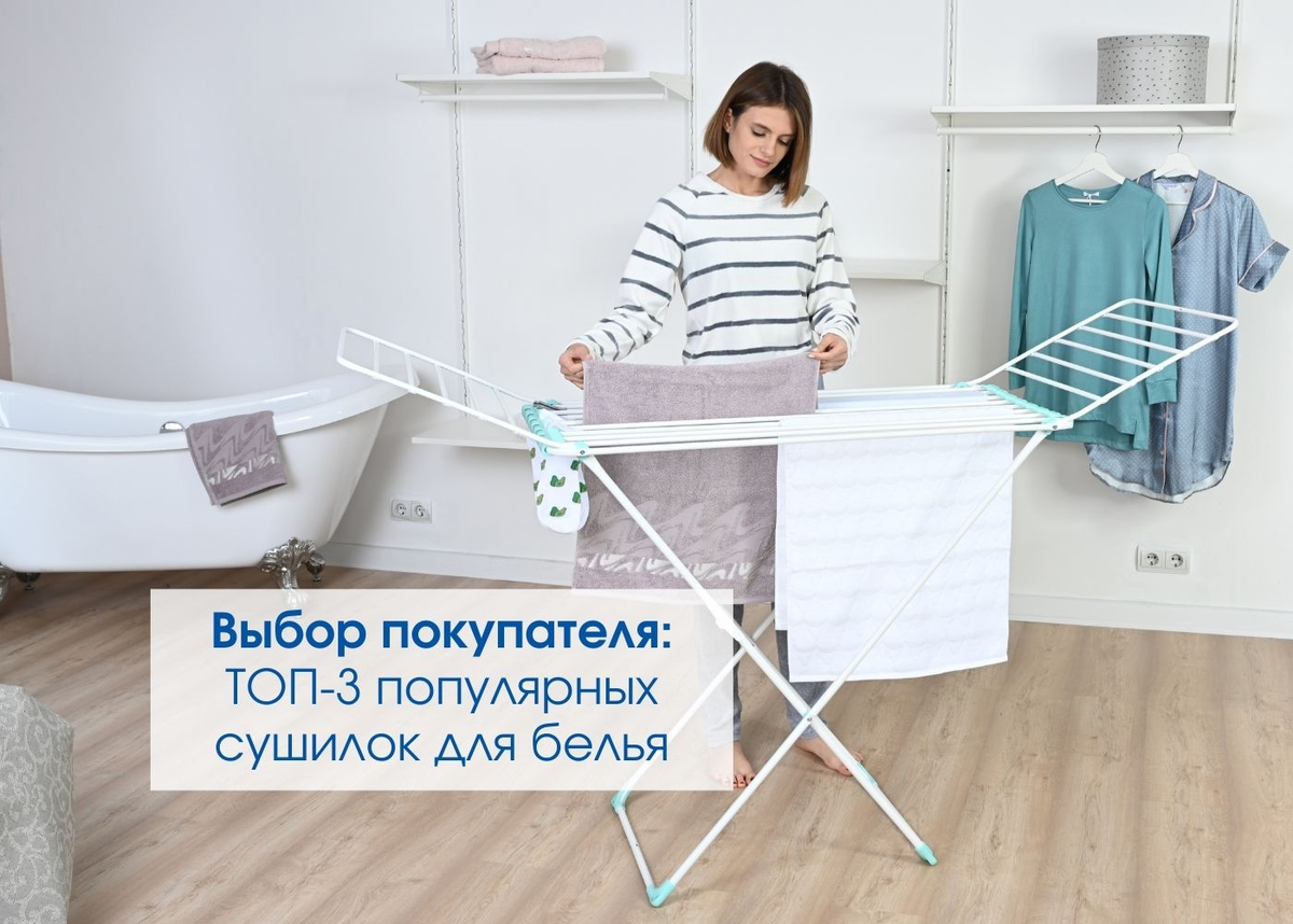 Лидер продаж - складная напольная сушилка СБ1. Сушильное полотно длиной 18 метров позволит одновременно сушить до 15 кг белья. Пластиковые опоры обеспечат устойчивость конструкции и защитят от царапин.