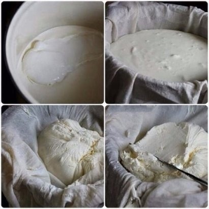 Эту массу откидываем на марлю, затем подвешиваем на марле над раковиной на 15 минут и даем стечь сыворотке.