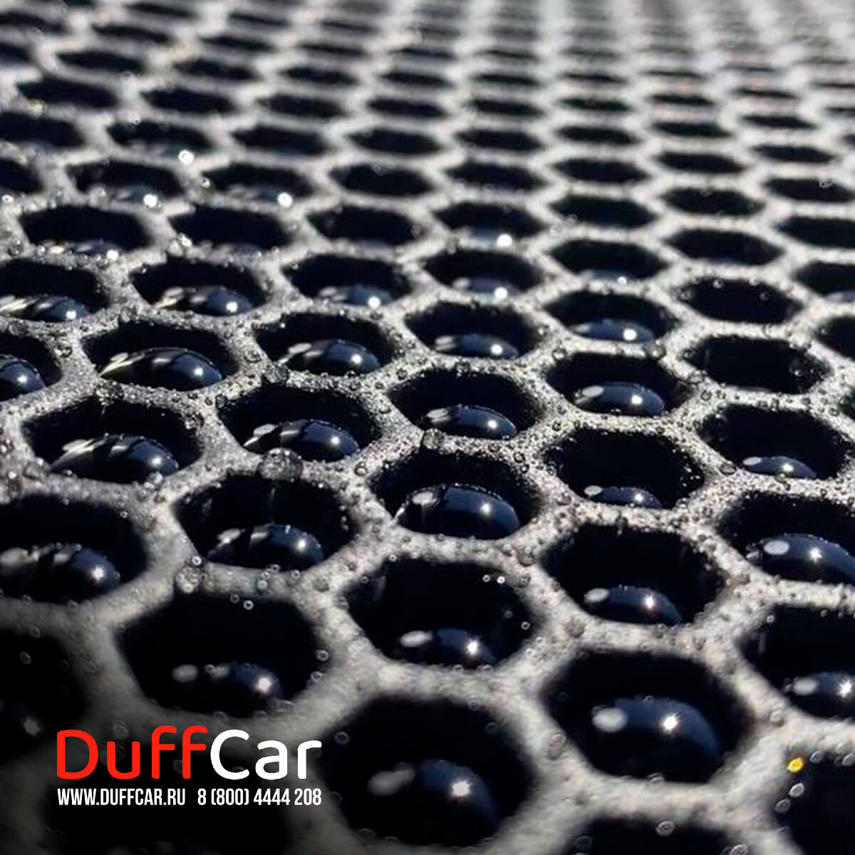 Сегодня мы разрушим один из самых больших мифов насчет EVA-ковриков! Звучит он так: EVA-коврики не защитят салон от грязи и воды, так как они без бортов и все прольется. Спешим рассеять такие мысли, так как это самая настоящая ложь. Главное преимущество EVA-ковриков именно в том, что они и без бортов надежно удерживают воду. В ковриках EVA от DuffCar около 1300 сот, благодаря чему в них задерживается до 2-х литров воды, грязи и пыли, не давая им распространяться по салону. Жидкость распределяется по глубоким ячейкам, оставляя ноги сухими, а одежду и обувь – чистыми. Они являются своеобразным барьером, отделяющим жидкость от попадания в салон. Если наклонить коврик под углом 45 градусов, то вода не выльется, а лишь будет перетекать из одной ячейки в другую. Но можно ведь сделать борты и обеспечить двойную защиту? Чтобы создать борты, ковры нагревают и затем придают нужную форму. Из-за этого образовываются микротрещины, через которые вода может попадать в салон. Такие коврики быстрее