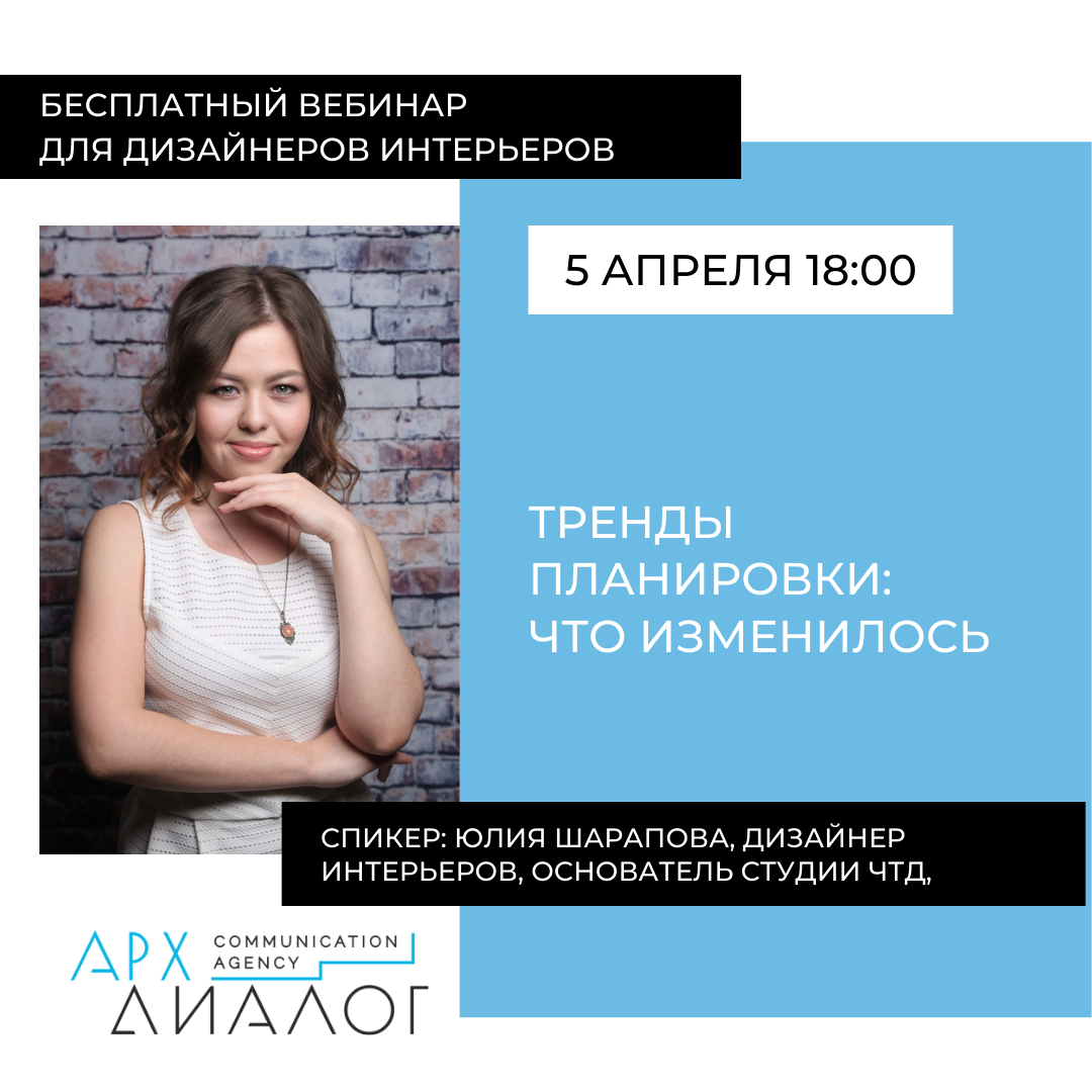 Приглашаем дизайнеров на бесплатный онлайн-вебинар по планировкам, который состоит уже 5 апреля. На вебинаре вместе с приглашенным экспертом поговорим, что изменилось за последние полгода, какие тренды набирают популярность и к чему следует присмотреться более внимательно, какой он, комфорт 2022? Регистрация: https://archdialog-online.timepad.ru/event/1971005/ В программе вебинара: - на что обратить внимание; - планировочные табу и аксомы; - комфорт 21 века: эргономика, психология, индивидуальность; - варианты корректировки готовой планировки; - примеры из практики; - ответы на вопросы участников. Регистрация: https://archdialog-online.timepad.ru/event/1971005/