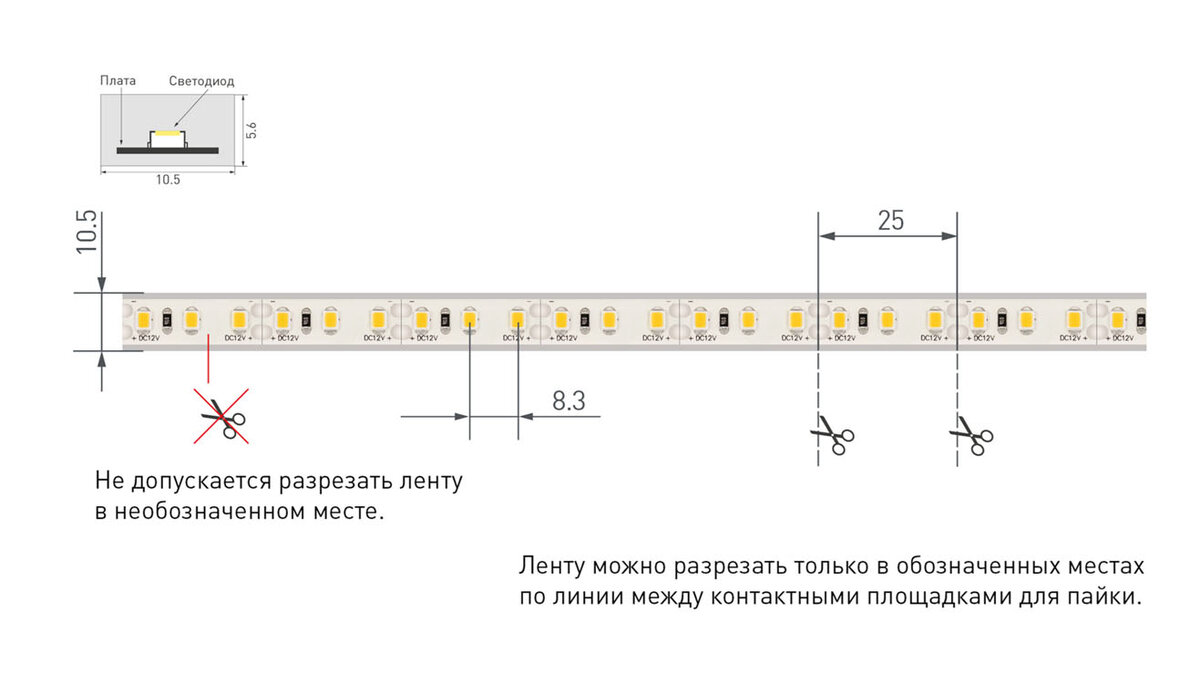 5. Минимальный отрезок: 25мм (3 светодиода)