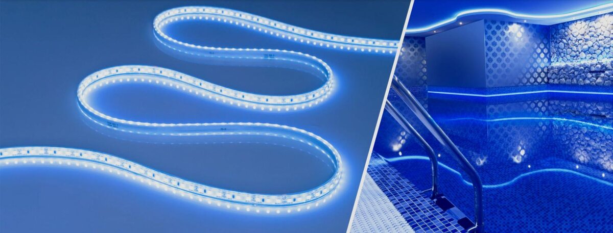 Создание красивых световых эффектов под водой — задача новинок Arlight, герметичных лент синего цвета свечения со степенью защиты IP68.